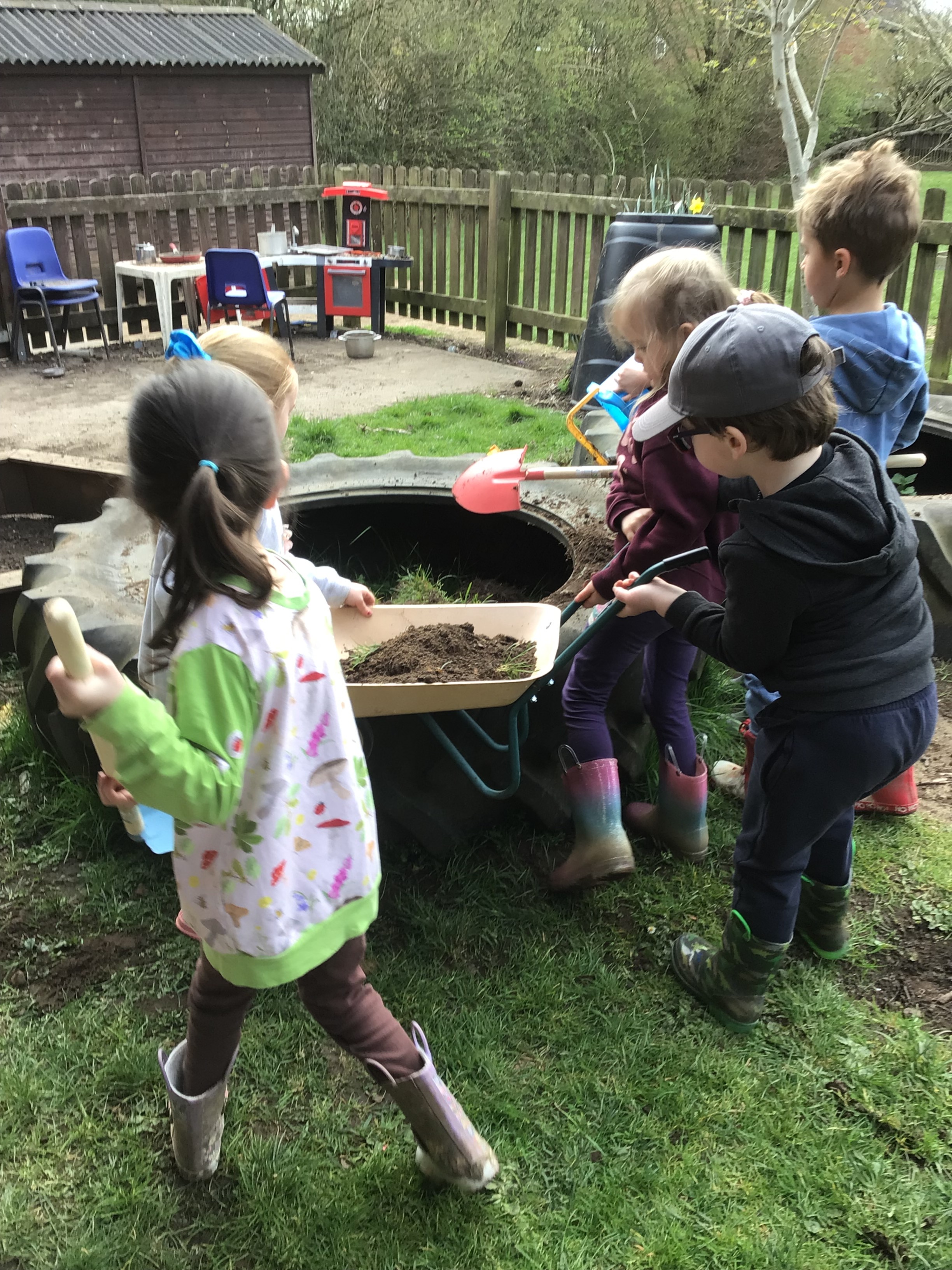 The children in EYFS have spent all day outside and been busy filling our tractor tyres with soil today. They are nearly ready to plant some plants after Easter but one of the tyres could still do with some more soil. If you have any old compost or soil lying around at home, it would be great if you could bring it in for us. Later this week we will also be putting down some grass seed so that it can start to grow over the Easter break. EYFS parents - you will find more photos on Tapestry.