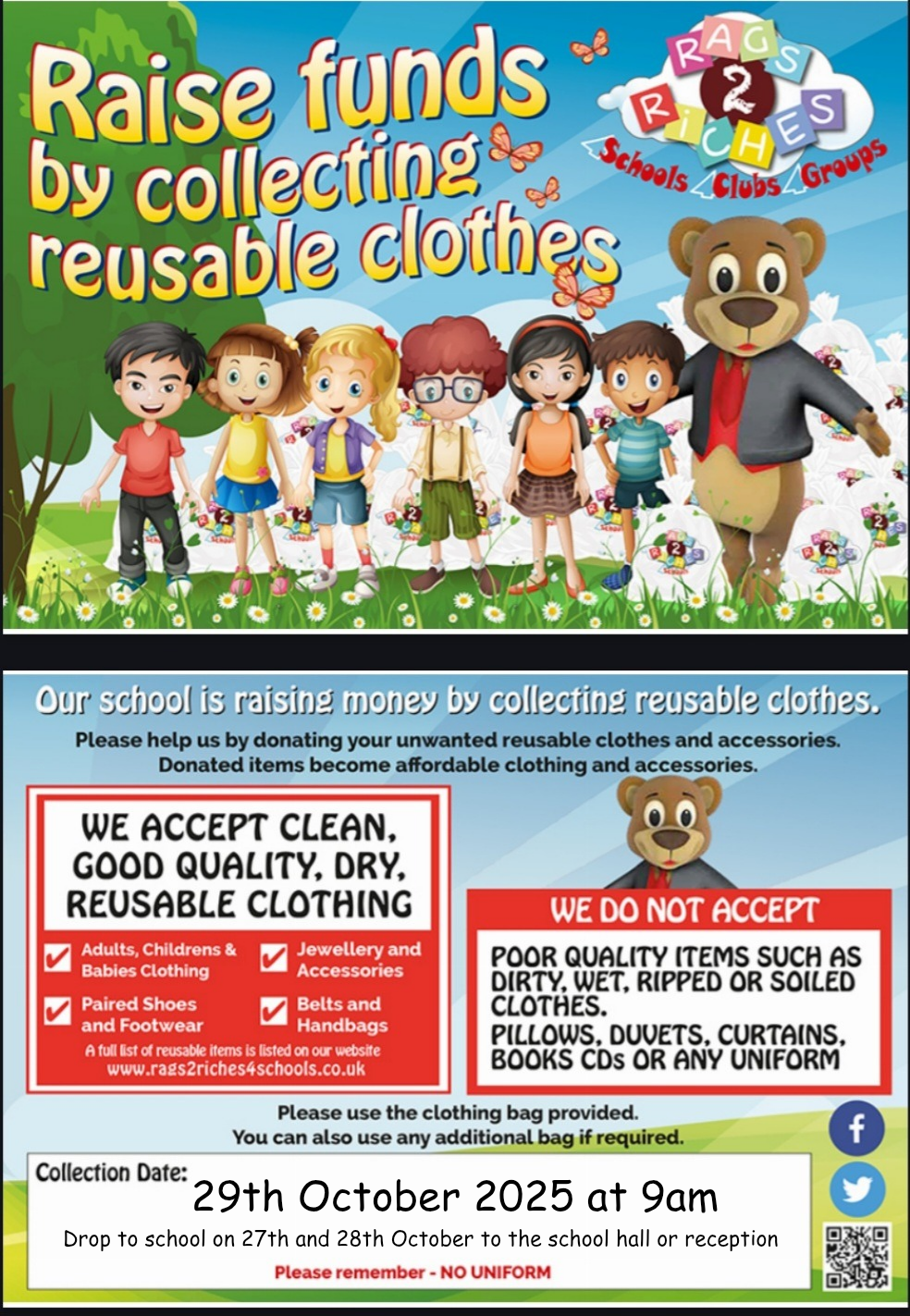 Our clothing collection will be collected tomorrow morning. If you have good, used clothes (not uniform), please ...